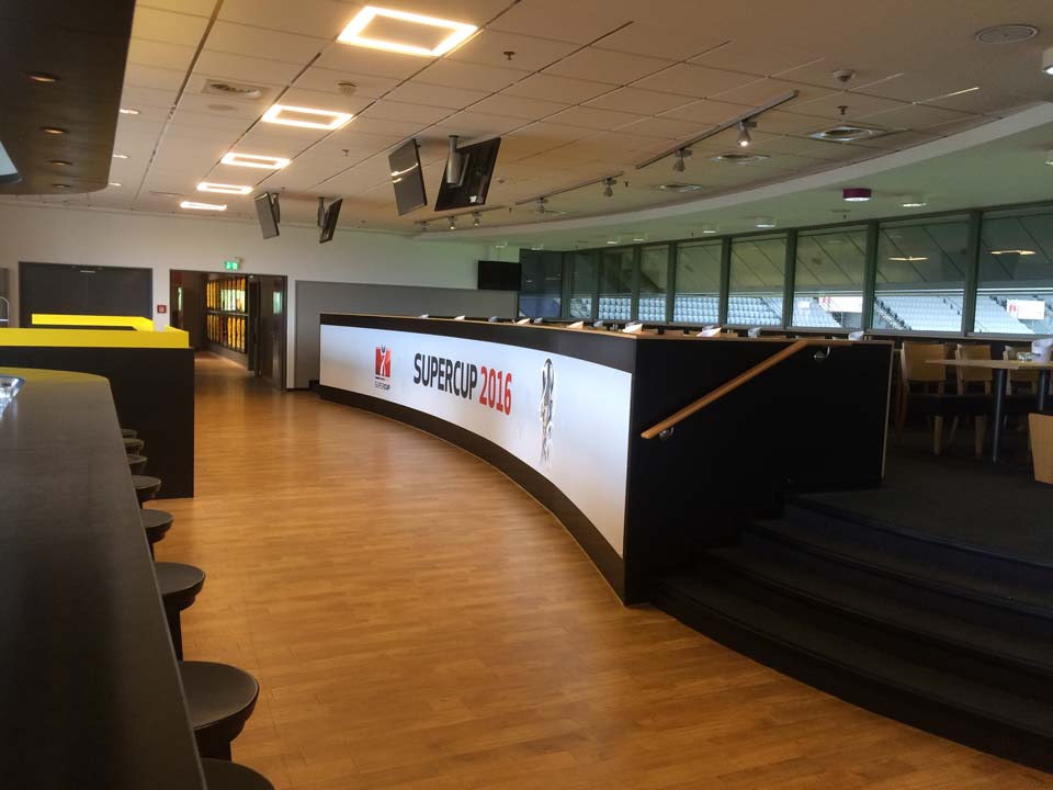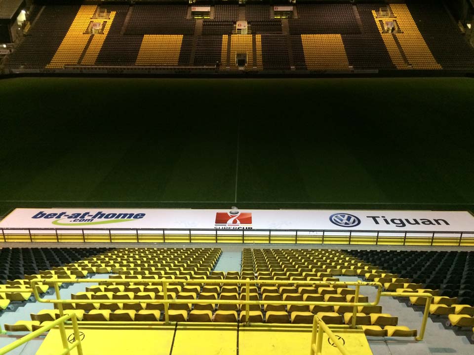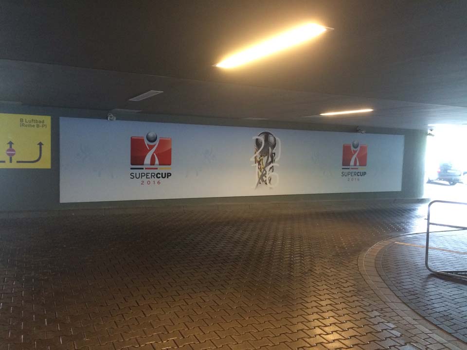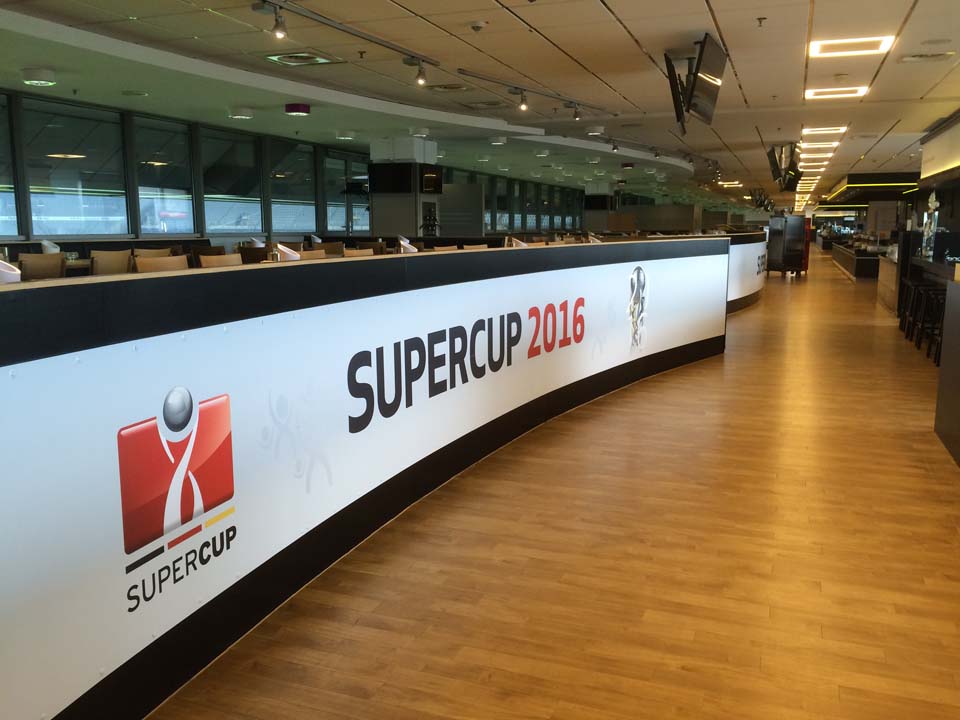 In kürzester Zeit wurde das Stadion mit dem deutschlandweit höchsten Zuschauerfassungsvermögen im einheitlichen SUPERCUP-Design gestaltet.